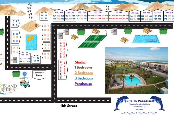Island Retreat Condos are connected to the Port Aransas Beach via a paved walkway, this low-key complex is comprised of furnished 1- to 3-bedroom condos that are individually owned. Each unit comes with free Wi-Fi, TVs. Many of the units at Island Retreat have ocean views.